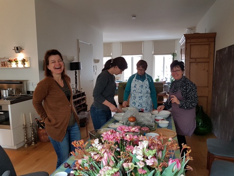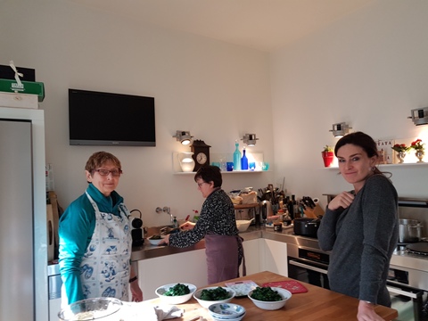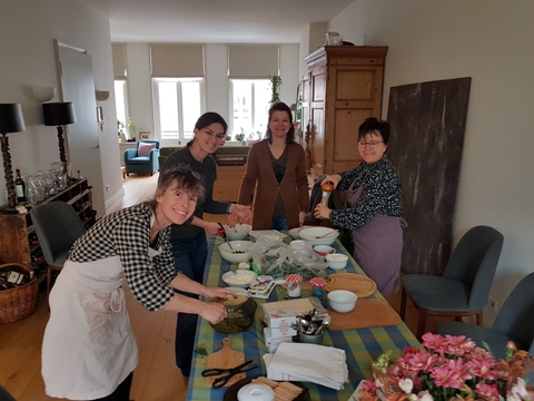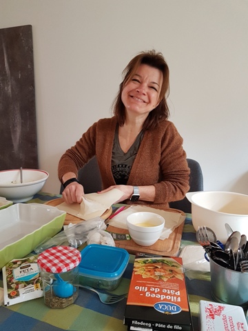 Heureusement nous avons encore pu nous réunir chez Marie-Pierre ce vendredi, pour une matinée joyeuse, enrichissante et surtout délicieuse ! Merci beaucoup Marie-Pierre de nous avoir accueillies chez toi et de nous avoir guidées pour concocter un délicieux plat grec : le spanakopita. Bravo pour ton organisation et ton savoir. On repart toujours de chez Marie-Pierre avec un bon plat et des petites astuces en plus.
