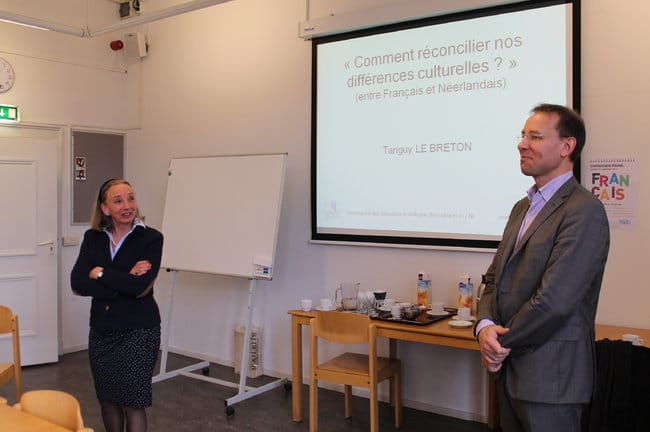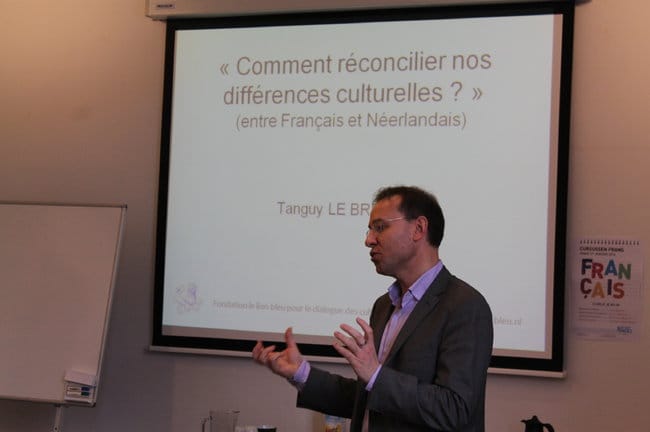 La conférence sur les differences culturelles NL/FR fut présentatée par Tanguy Le Breton, de l’association “Le Lion Bleu”.