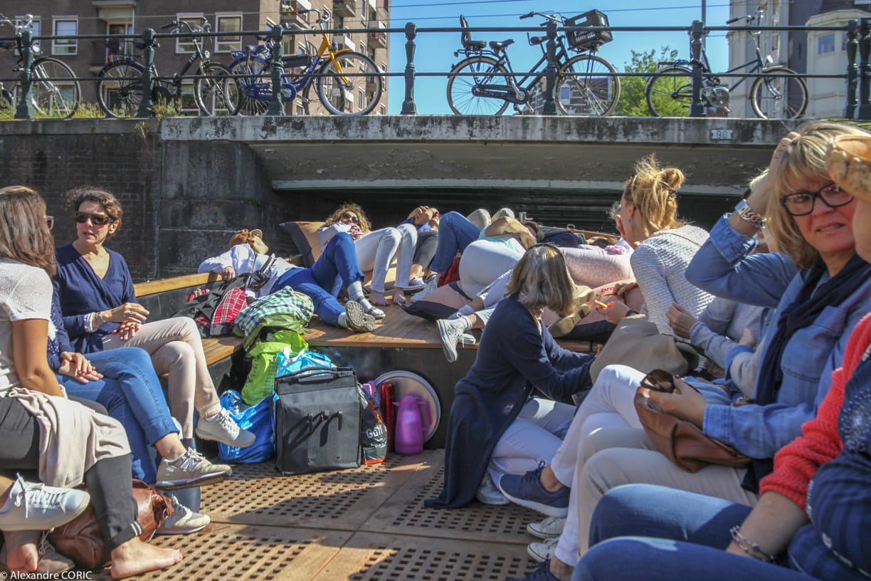 Notre dernière sortie annuelle au fil de l’eau était parfaite : temps idéal, petit pique-nique agréable et super ‘appeltaarten’ (tartes aux pommes) sur le bateau. Merci Alexandre Coric pour tes photos qui donnent un bel et bon aperçu de notre balade de découverte si réussie de l’Ouest d’Amsterdam.