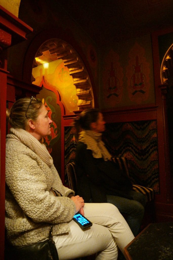 C’était MAGNIFIQUE, unique, fantastique, surprenant, chaleureux, vraiment cette sortie est inoubliable. Nous avions comme guide une jeune néerlandaise qui fait des études et des recherches sur cet endroit. Elle était pleine d’enthousiasme, elle nous a parlé de la magie de ce théâtre et de son fondateur Abraham Icek Tuschinski pendant plus de 2 heures et demie. Chaque jour vous pouvez faire une visite à l’aide d’un audio-guide (en néerlandais et en anglais) de 9h30 a 11h00. La visite dure alors 45 minutes et je la conseille à tout le monde.
