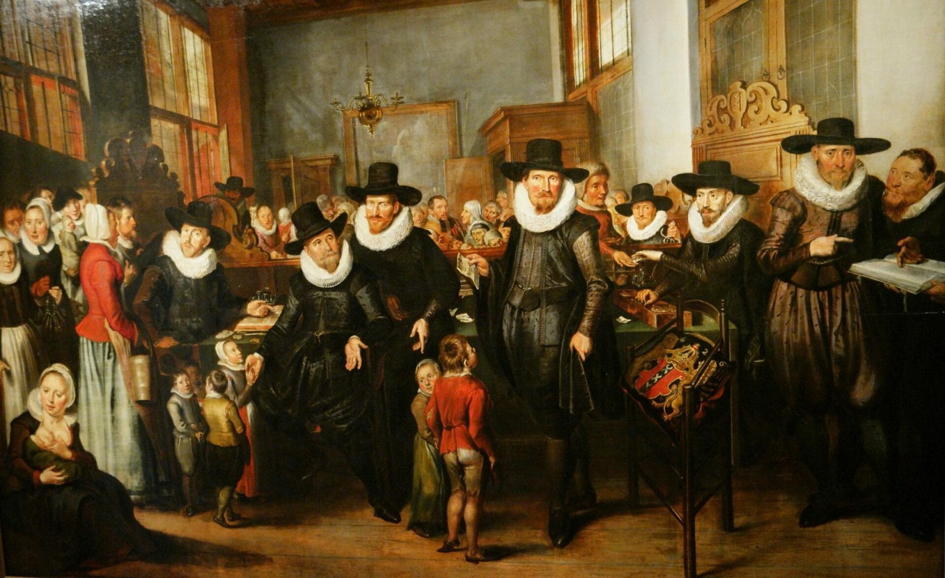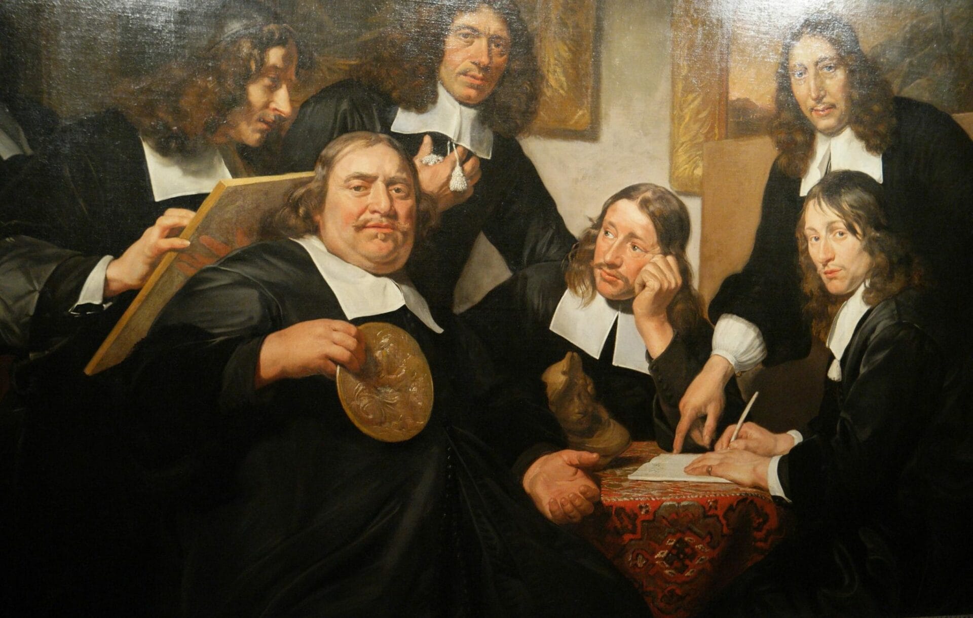 Les citoyens de l’époque en haut de l’échelle sociale aimaient se faire représenter en groupe par corps de métiers (guilde), pour montrer leur richesse mais aussi leur côté social.